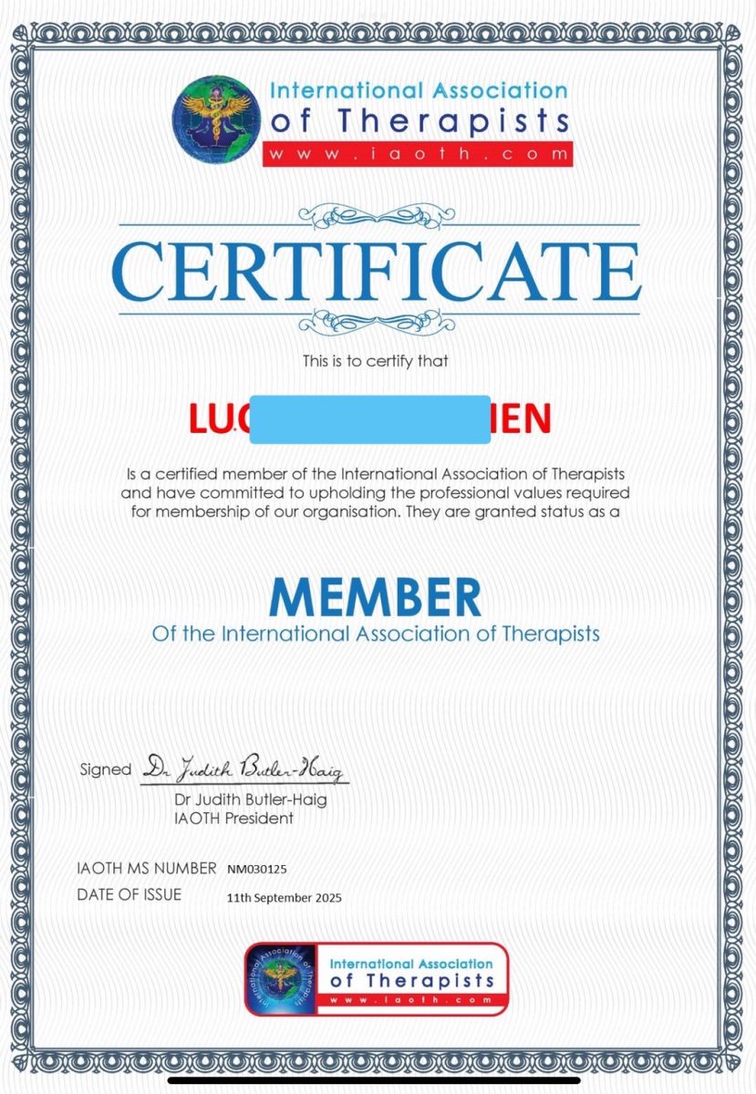 ※英國 IAOTH 證照 ~【國際理療師會員證書】證照樣式